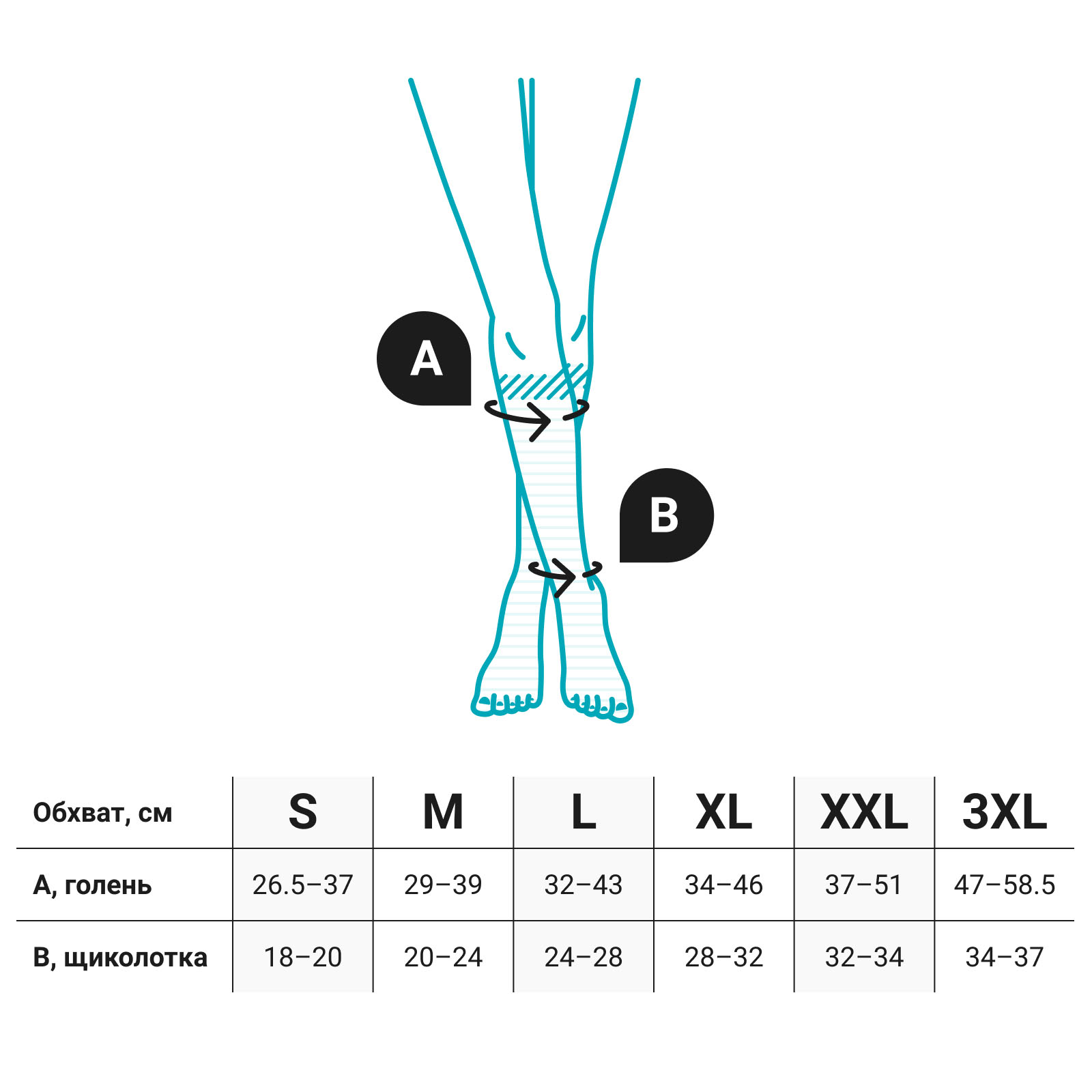 Обратите внимание! При подборе размера гольфов, чулок и колгот руководствуйтесь приведенными здесь таблицами. Измерения нужно проводить утром, до появления отеков на ногах.