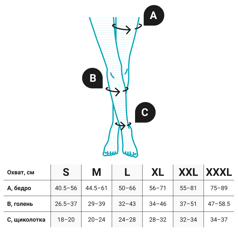 Обратите внимание! При подборе размера гольфов, чулок и колгот руководствуйтесь приведенными здесь таблицами. Измерения нужно проводить утром, до появления отеков на ногах.
