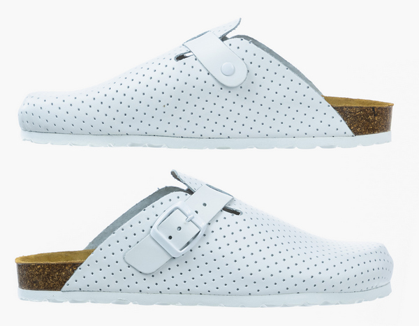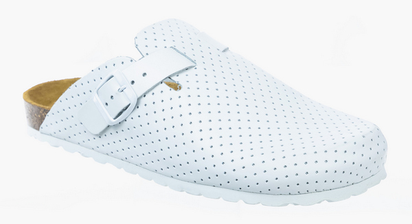 Универсальные анатомические сабо СС-11103-71 Dr.Sursil белого цвета с верхом из натуральной кожи с перфорацией для наилучшего воздухообмена.